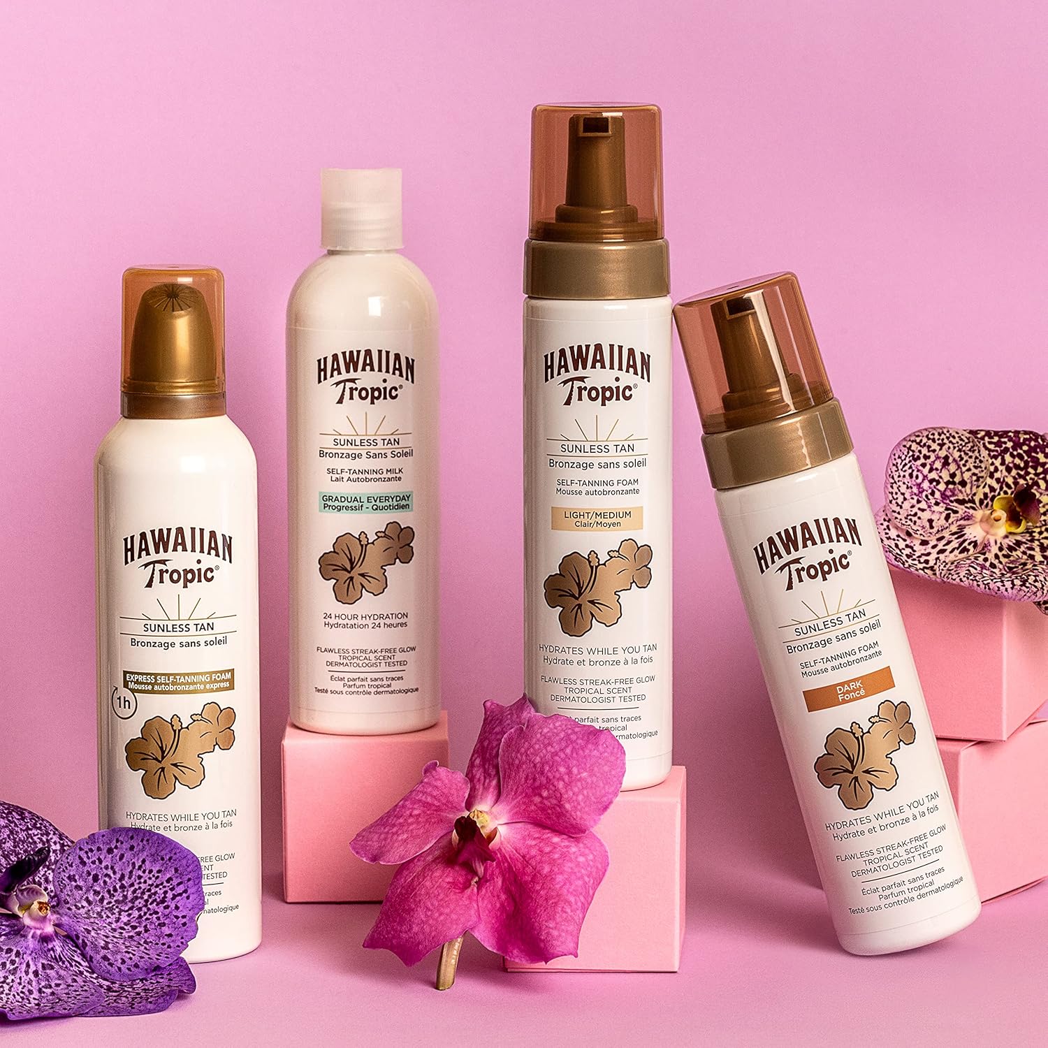 Get that Hawaiian glow all year round with our new sunless self-tanning foam in dark/ light/medium. Our self-tanning foams have been created to care for your skin, with your inner and outer beauty in mind. This self-tanning foam pampers your skin, with an ultra-light formula containing Aloe & Vitamin E, that hydrates your skin while you tan. It’s also quick drying and transfer resistant. Infused with a tropical scent that will delight your senses and transport you to the islands, whether you’re living in Maui, Madrid or Manchester! Our trusted, vegan and cruelty-free products embody the Hawaiian way of life and strive to create a better world and a better you. Use daily for a long-lasting Hawaiian glow.