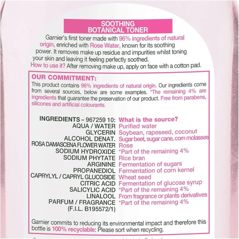 - Garnier Rose Toner is made for 96 percent natural origin ingredients