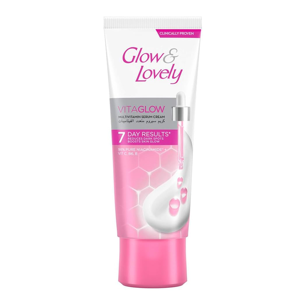 Glow & Lovely Advanced Multi Vitamin Cream (formerly known as Fair & Lovely) works like a skin expert to give you a radiant glow- which is skin clarity, brightness, and Radiance. The advanced multivitamin face cream is enriched with Vitamin B3, C and E, this cream gets quickly absorbed and penetrates deep into the skin, to brighten skin cells, reduce spots and illuminate skin from inside out. Vitamin B3 also known as Niacinamide, Niaciniamide cream is known to improve skin barrier, act as an anti-inflammatory, protecting the skin’s natural health and giving a glow. Vitamin C protects the skin from external damage and is known to improve skin immunity and reduce spots. Vitamin E moisturizes your skin from deep within keeping it hydrated. Allantoin helps remove dull skin cells from top layers of skin revelling soft smooth glowing skin. Also has antioxidants that reduces dark circles. This formulation is clinically proven to give an even-toned; glowing skin which is non-oily. Sunscreen with SPF 15 protects the skin by effectively blocking UV rays. The product has no bleaching agents and is dermatologically tested and proved. Just dot over face and massage evenly over face and neck. Use twice daily for best results after cleansing skin with Glow & Lovely Insta Glow Facewash.