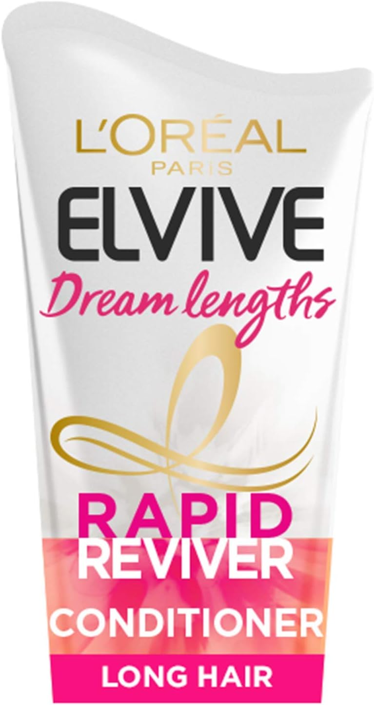 Introducing rapid Reviver power conditioner from Elvive dream lengths. Need more than a regular conditioner? Discover the power of intense conditioning formula, infused with an amino acid and Castor Oil. The formula leaves hair feeling intensely nourished and reinforced. Contains twice more conditioning ingredients versus a classic conditioner. Helps to reduce breakage from brushing. Short on time? No leave-in time and no weigh down. Daily use. Instrumental test on bleached hair. After using dream lengths shampoo, apply to wet hair from lengths to tips and rinse thoroughly. No leave-in time necessary. Use daily.