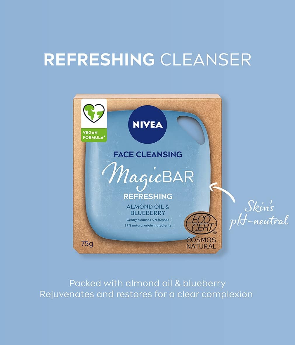 NIVEA MagicBAR Refreshing Almond Oil Face Cleansing Bar (75g), Vegan Face Cleanser, Plastic-Free Facial Cleansing Bar, Facial Cleanser with Recyclable Packaging