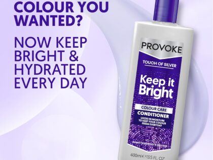 PRO:VOKE Touch Of Silver Colour Care Conditioner’s creamy, protective formula strengthens and helps repair damaged hair by infusing extra moisture for an improved smooth and silky texture. With Optical Brighteners, it instantly boosts shine and keeps hair colour rich. By protecting the structure of the hair and preventing colour from dulling, moisture and softness are restored, leaving hair feeling nourished and deeply moisturised. Available in 400 ml bottle.